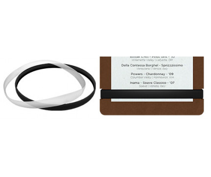 This small menu band is our exclusive elastic rubber band (latex free) to secure all your menu lists or documents and prevent flaring. Use this band on our small and tall menu boards to help secure and hold down your materials.