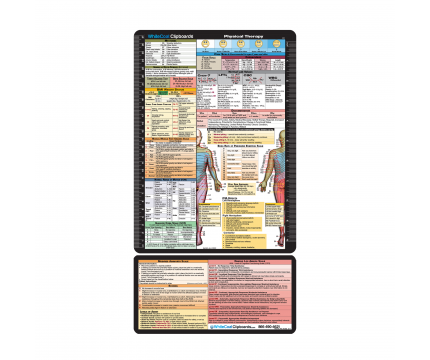 Get a Physical Therapy label for your WhiteCoat Clipboard. This label covers physical therapy topics and makes a great reference with specific details on therapy testing and grading. Additional material on the Rancho Los Amigos Scale, Modified Ashworth Scale, and levels of assist is located on the inside of this clipboard. Clipboard is NOT included